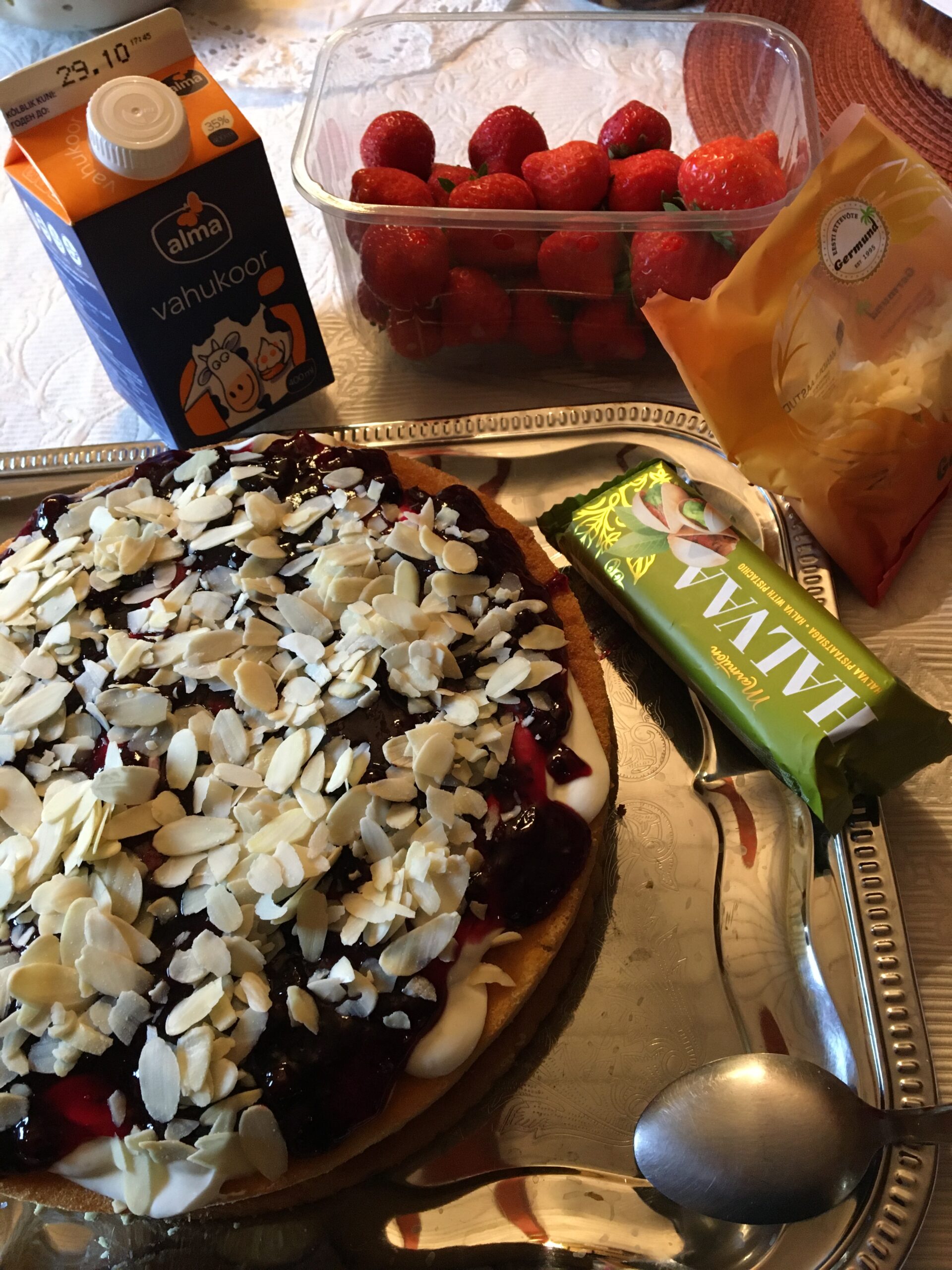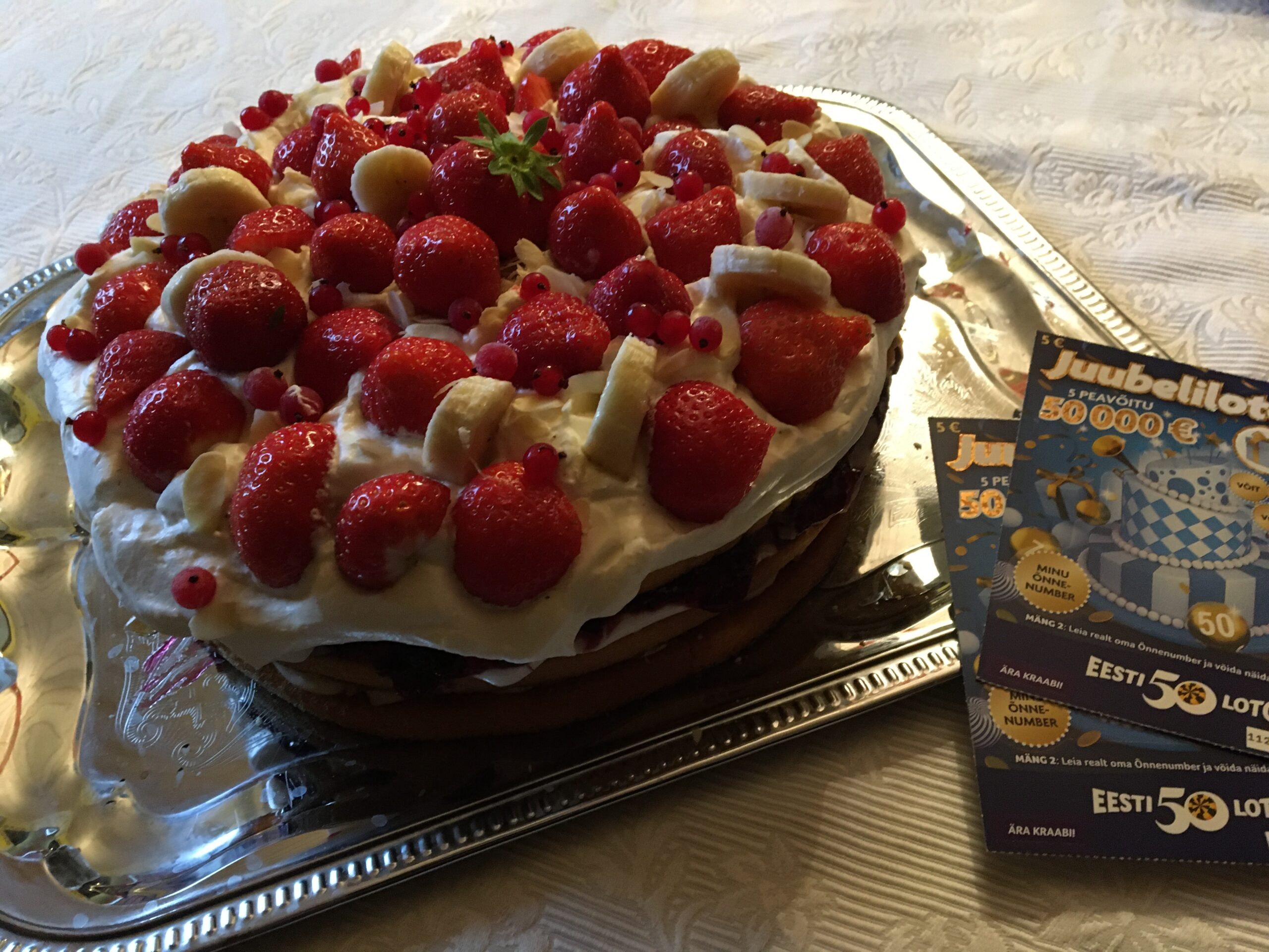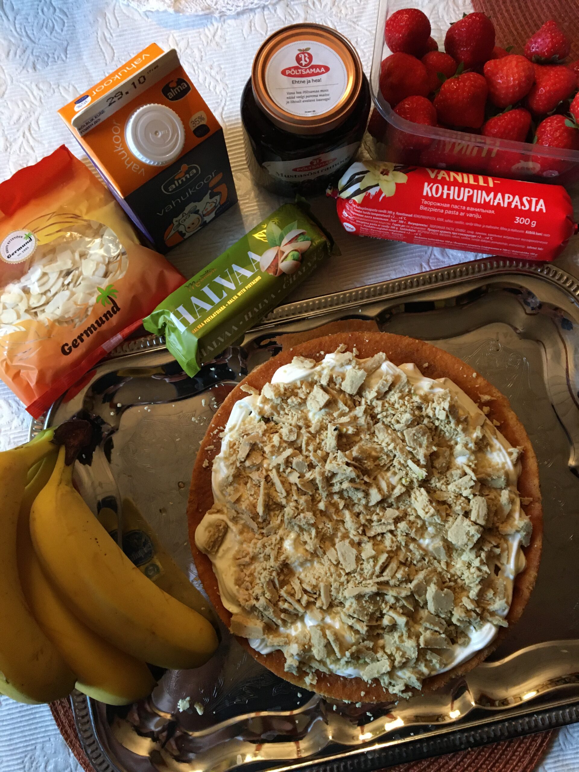 Homme saab meil tutvumisest poolteist aastat ning kuna meil on see traditsiooniline lasanje ja vahurkooretordi päev (loe rohkem SIIT), siis täna tegin torti, et see hommikul kohe lauda kaunistaks. Seekord mõtlesin uue retsepti väja. Näiteks lisasin tordile mega maitsvat Marmiton´i pistaatsiapähkli halvaad. Ostsin nalja pärast ka kaks Eesti Loto Juubeliloterii piletit (5.- EUR/tk), et hommikusse veelgi lisapinget tuua. Homme ootab meid veel Pärnu Spaa Hotell Viiking vee- ja saunakeskus ning restoran. Ööbime samuti Viikingis.