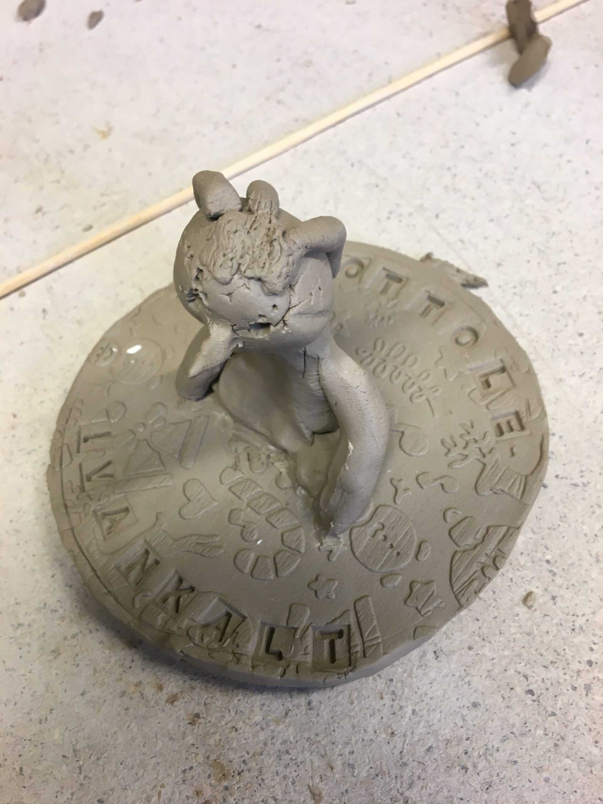 Ivanka Shoshanaga (13) käin üks-ühele privaatses keraamikatunnis juba mitu aastat. Ta hindab käsitööd ning peale meie näitust Eesti Rahva Muuseumis (loe SIIT ja SIIT), kus tervele Eestile pandi vaatamiseks üles ka tema valmistatud keraamika paremik, on ta veel suurema õhinaga asja juures. Minule tema nö. kunstniku-käekiri väga meeldib. Tal on väga omanäolised, põnevad ja originaalsed ideed. Mulle meeldib väga kui loovalt ta igale tööle läheneb. Kodus naudime lisaks minu tehtud keraamikale tema valmisatud savinõusid (savist praetaldrikuid, kohvitasse ja kausikesi) juba aastaid! Tänases tunnis hakkas ta kingitust meisterdama! Mis võiks veel lahedam olla kui oma kätega valmistatud nimeline kingitus! Täna valmis uhke multifunktsionaalne anum, mille kaant kaunistab lumememmest nupp ning pühendus OTTOLE IVANKALT! Ootan juba põnevusega, mis värvi ta otsustab selle peale esimest põletust värvida! Ma küll väga usin sissekannete tegija pole aga meie keraamika valmistamisest ja maalimisest saate lugeda põhjalikumalt meie käsitööblogist, mis asub meie pere brändi “Elisheva & Shoshana” veebilehel –> ElishevaShoshana.com.