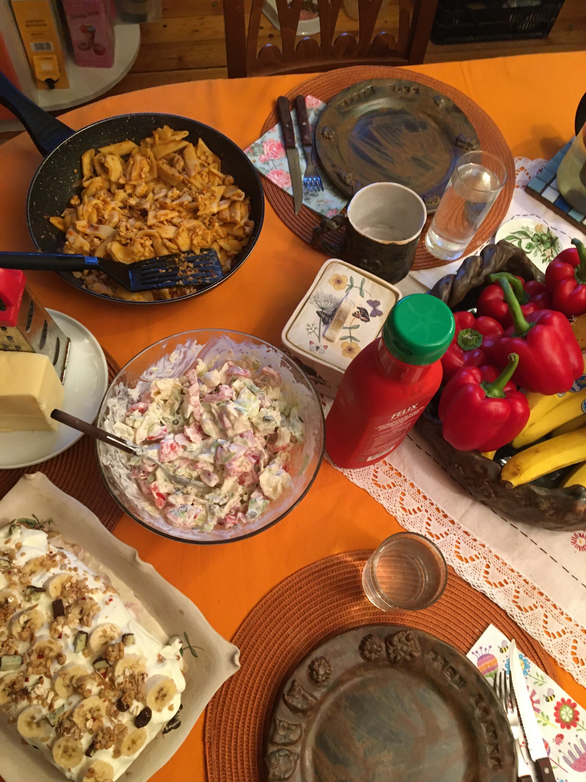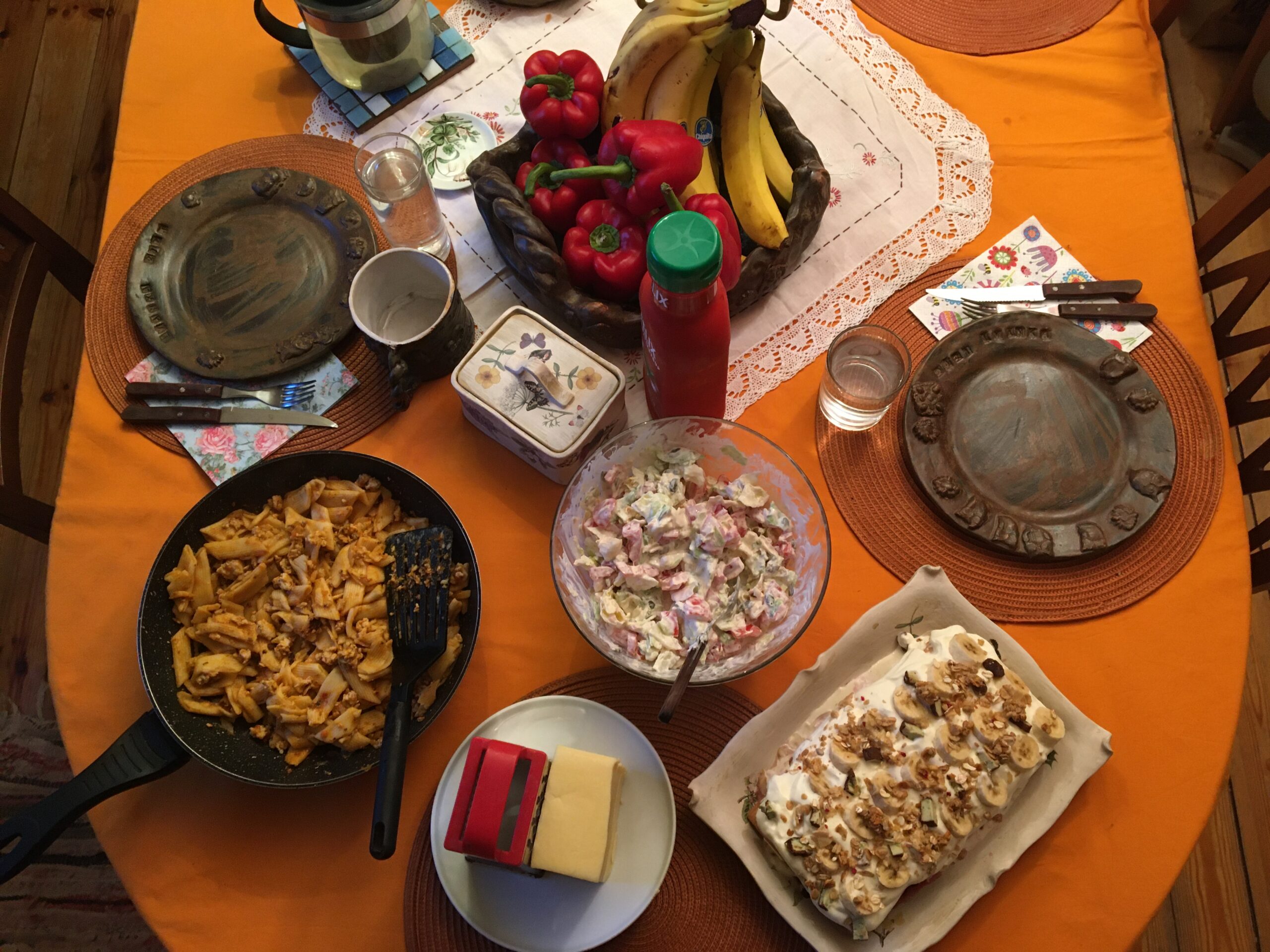 Teine vaatus: Pühapäeva hommik kodus. Kuna Allan mängib Estella ja Ivanka elus juba üle aasta igapäevaselt suurt rolli, siis tegid nad ka talle vahva isadepäeva kaardi. Allan või Onu-Allan nagu nad kutsuvad, on neile nagu boonus-isa, lisa täiskasvanu nende elus. Mina katsin ilusa laua, millelt ei puudunud ka ise valmistatud küpsisetort. (PS! Hahaaa.. vaadake millise näljase näoga kass akna taga tuppa laskmist ootab … elu maal …)