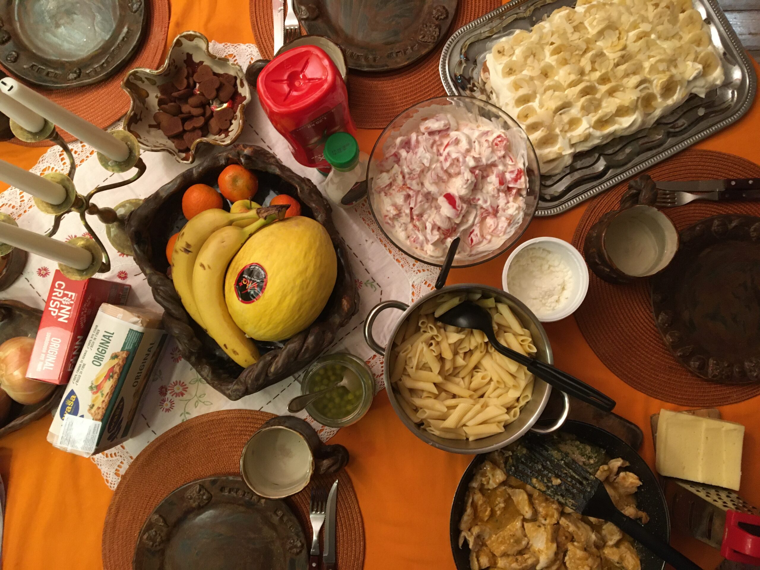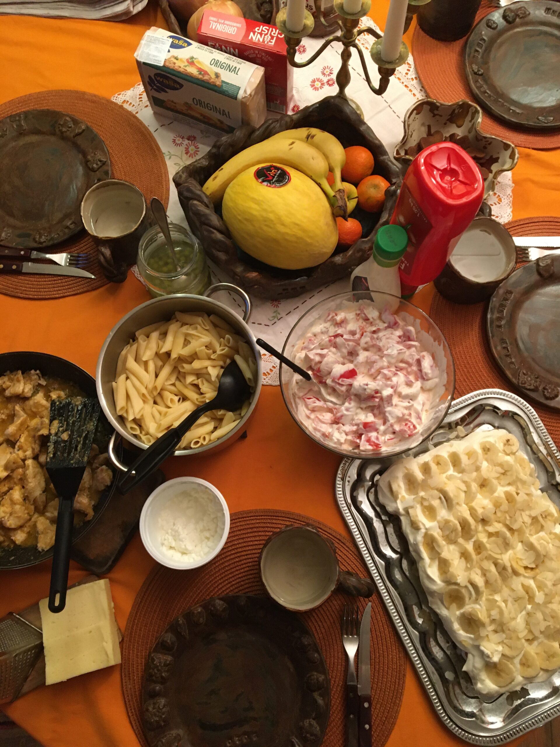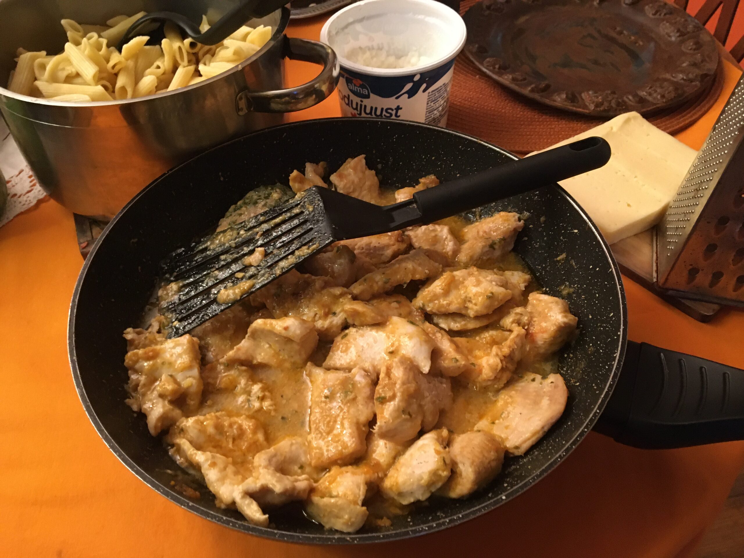 Meie majas peetakse igasugustest tähtpäevadest väga lugu, sest me armastame väga süüa ning meile meeldib ka kui on põhjust juua 😀 hahaaaa. Täna lapsed kooli ei läinud, Estella Elisheva on kaks nädalat koduõppel ja Ivanka Shoshana jätsime ka täna koju. Magasime pikalt, tegin mõnusa hommikusöögi (tatrapuder, muna, oliivid, värske kurk, maitseroheline ja hapukoor) ning siis läksin hambaarstile. Käisin teist korda Unimed kliinikus Jelena Jegorova juures ja pean ütlema, et ta on esimene hambaarst mu elus, kes ei koonerda tuimestusega.. ikka teine tera on hambaarstil käia, kui ei pea seda puurimisvalu kannatama. Seejärel tulin koju, pool nägu täiesti tuim ning hakkasin meestepäeva lauda katma. Küpsetasin krõbeda kanafilee, makaronid ning kõrvale pakkusin konservherneid, kodujuustu ning tomati-hapukoore salatit. Magustoiduks valmistasin aga mahlase kohupiima – vahukoore tordi rohke mandli ja banaani kattega.