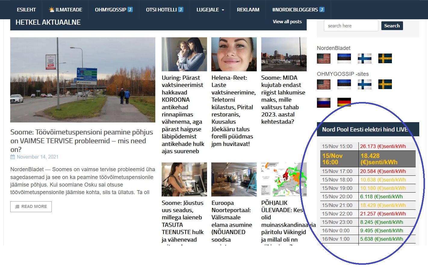 ESMASPÄEV – Tegime Eesti ja Soome NordenBladeti lehele laheda rakenduse – elektrihindade ülevaate: ELEKTRI HINNA SPIKRI.