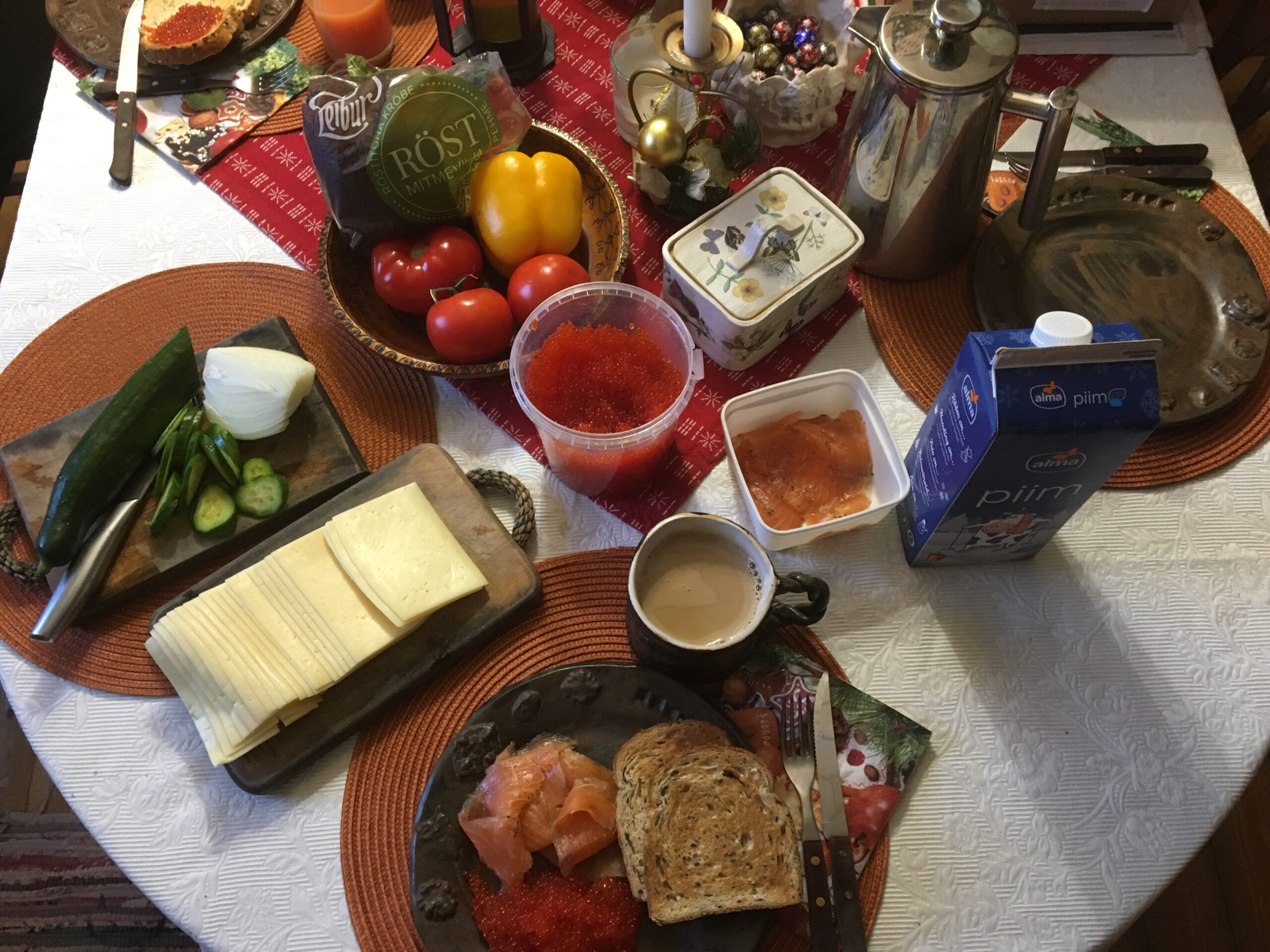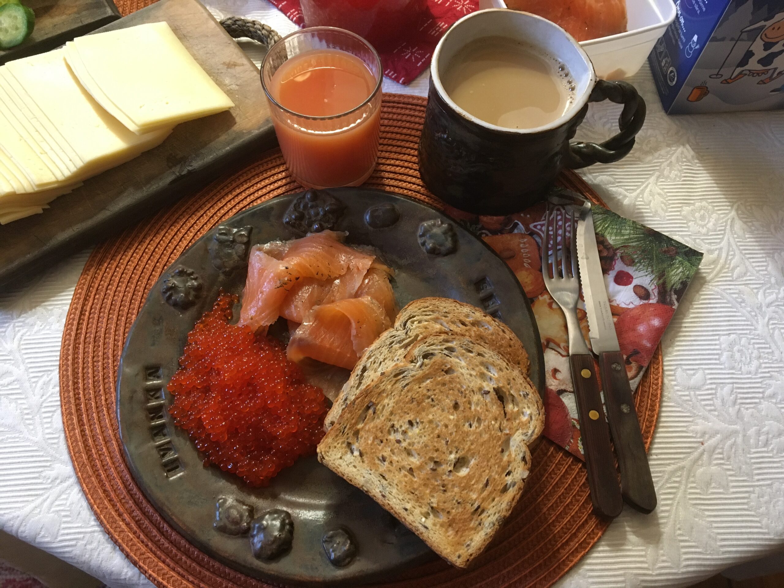 Nautisin pikka ja rahulikku hommikusööki värskete ajalehtedega. Jõin klaasitäie God Morgon punase greibi mahla, kaks tassi hommikukohvi ning sõin oma lemmikuimast lemmikuimat hommikusööki – sibula, lõhe ja kaaviari röstsaia! Yammm… Seejärel võtsin kaks topsi musta pässiku tõmmist ning läksin õue lund lükkama. Värskes õhus kulutasin sujuvalt mitusada kalorit ning kõndisin üle 6000 sammu. Seejärel tuppa pessu ning ilusalongi.