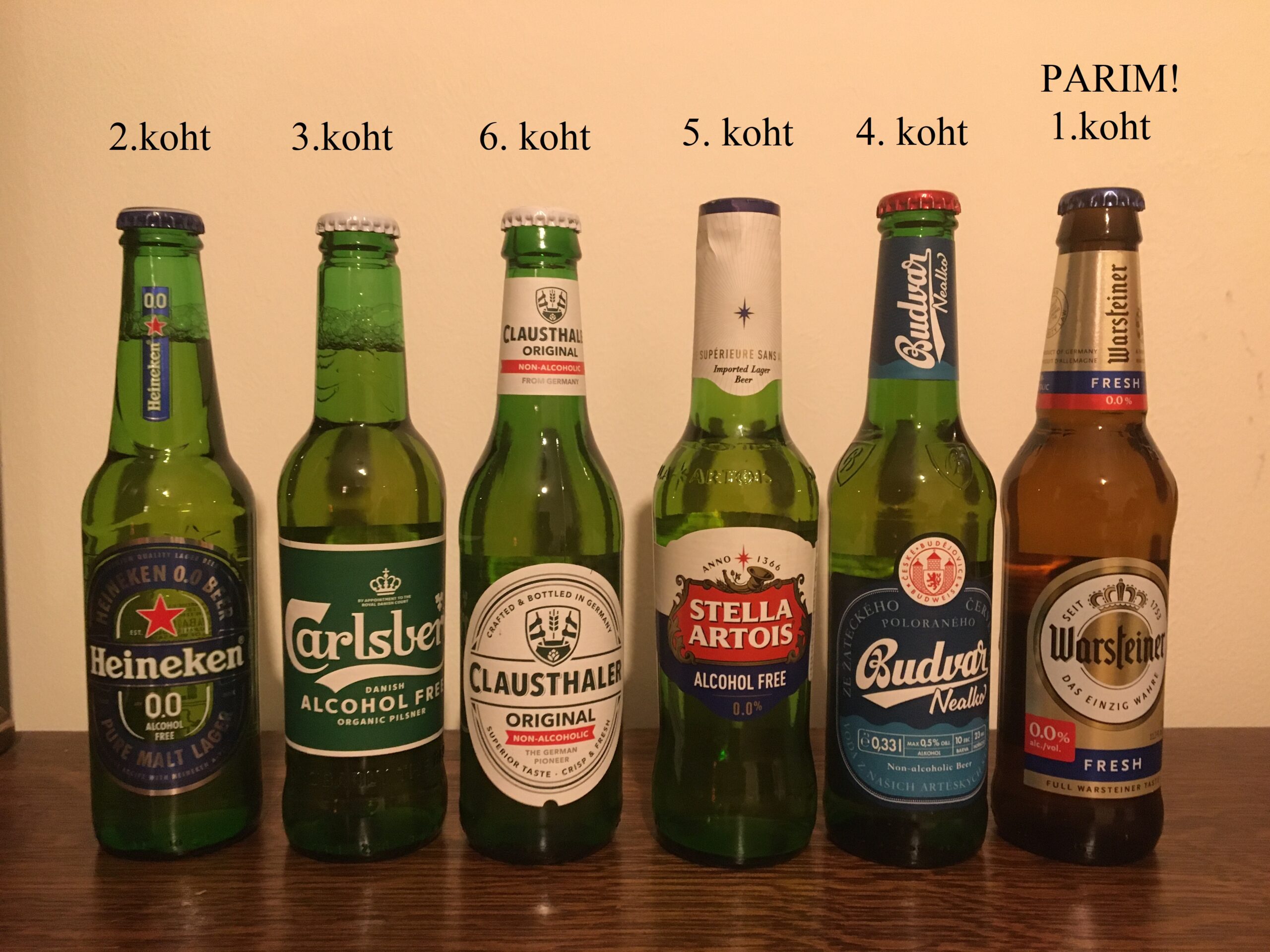1. koht: A.Le Coq “Warsteiner Premium Fresh” (23 kcal / 0%). Super hea, suur aplaus ja kiidusõnad… edastas järgmisi pika edumaaga minu silmis. Väga maitsev ning petab täisti ära, kui ei teaks, et alkoholivaba, siis ei usuks.