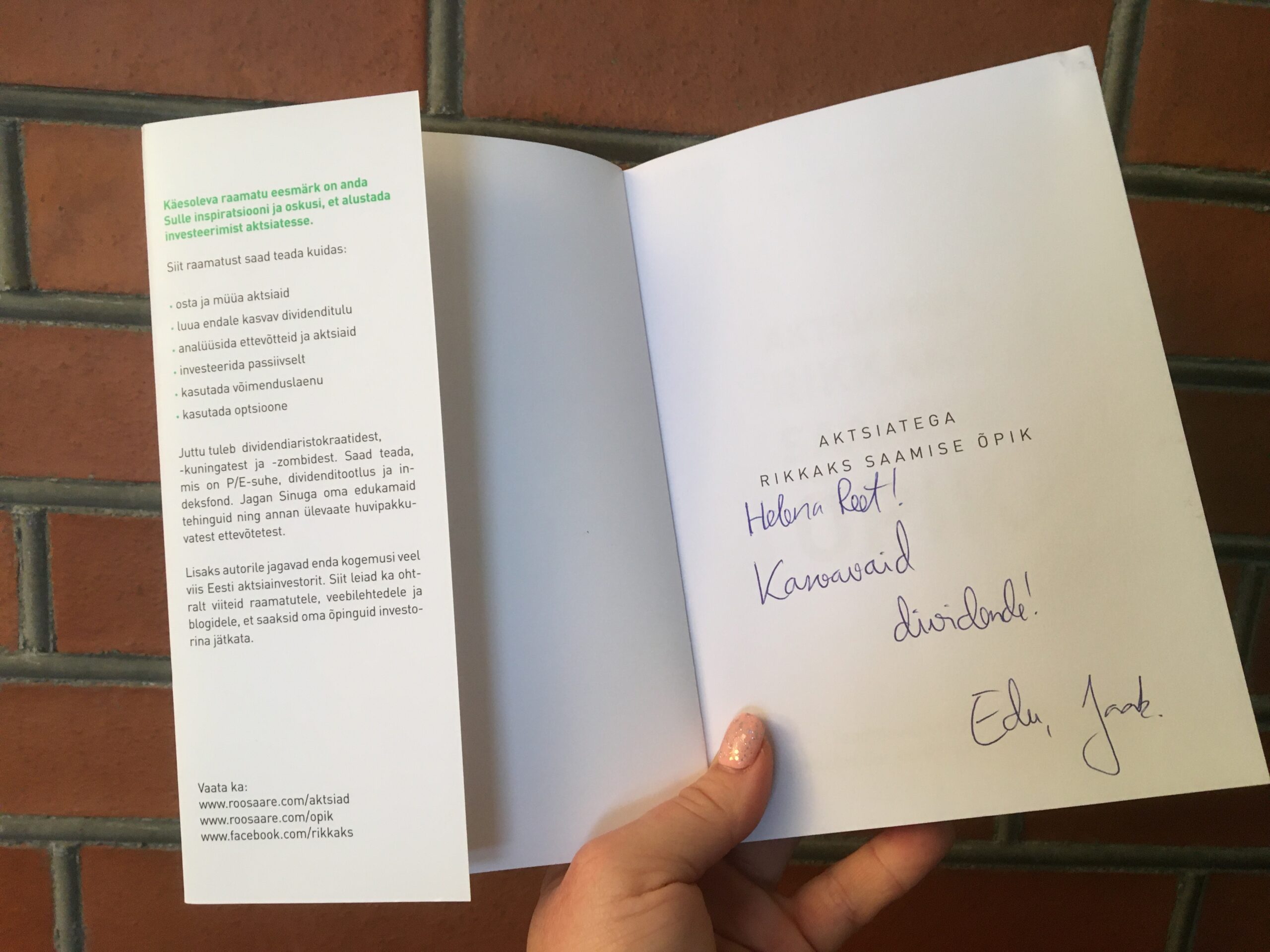 Tulles tagasi tänase kuupäeva juurde, millele numeroloogid omistavad suisa paranormaalseid omadusi… Sättisin täna kodus raamaturiiulit ümber ning juhtus ma ütleks üks vägagi maagiline asi. Raamatuid kastidest riiulisse ümber tõstes kukkus välja Jaak Roosaare “Aktsiatega rikkaks saamise õpik”. Ramat, mille investorist naabrimees Jaak koos pühendusega “Kasvavaid dividende” kinkis mulle juba aastate eest.