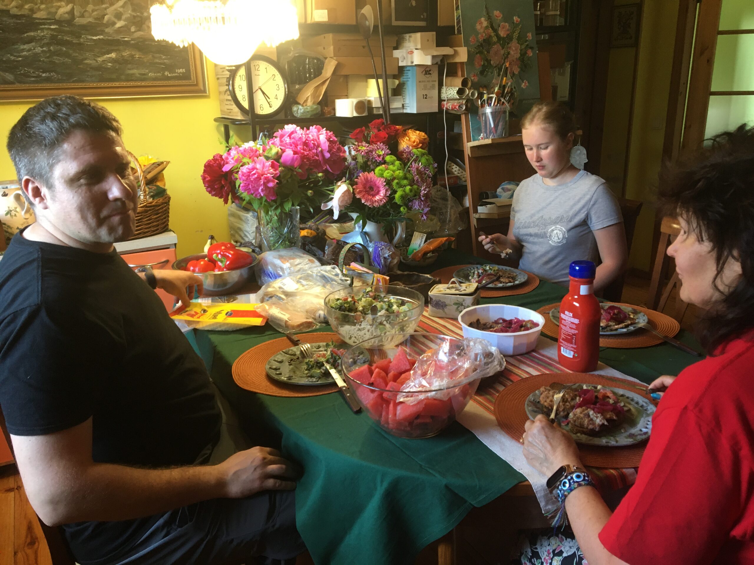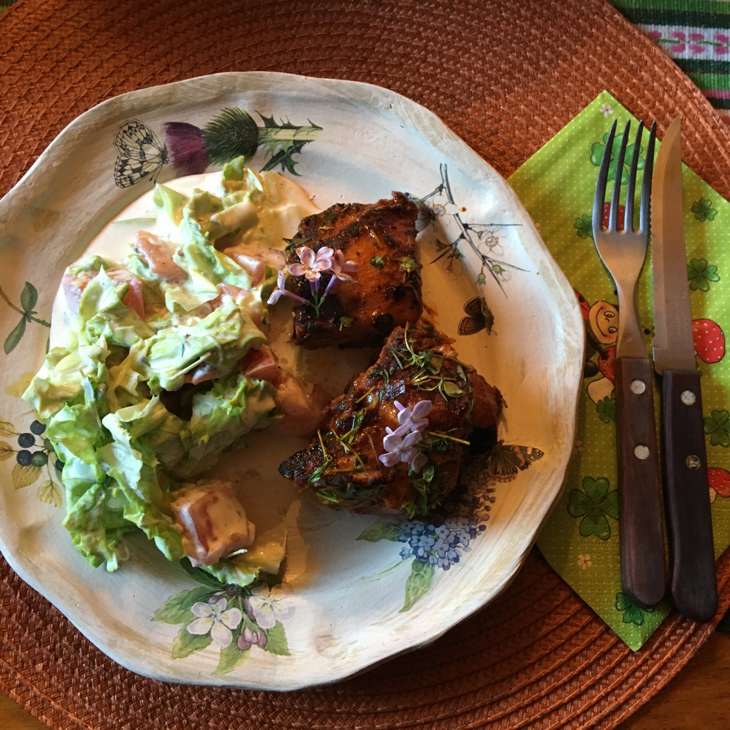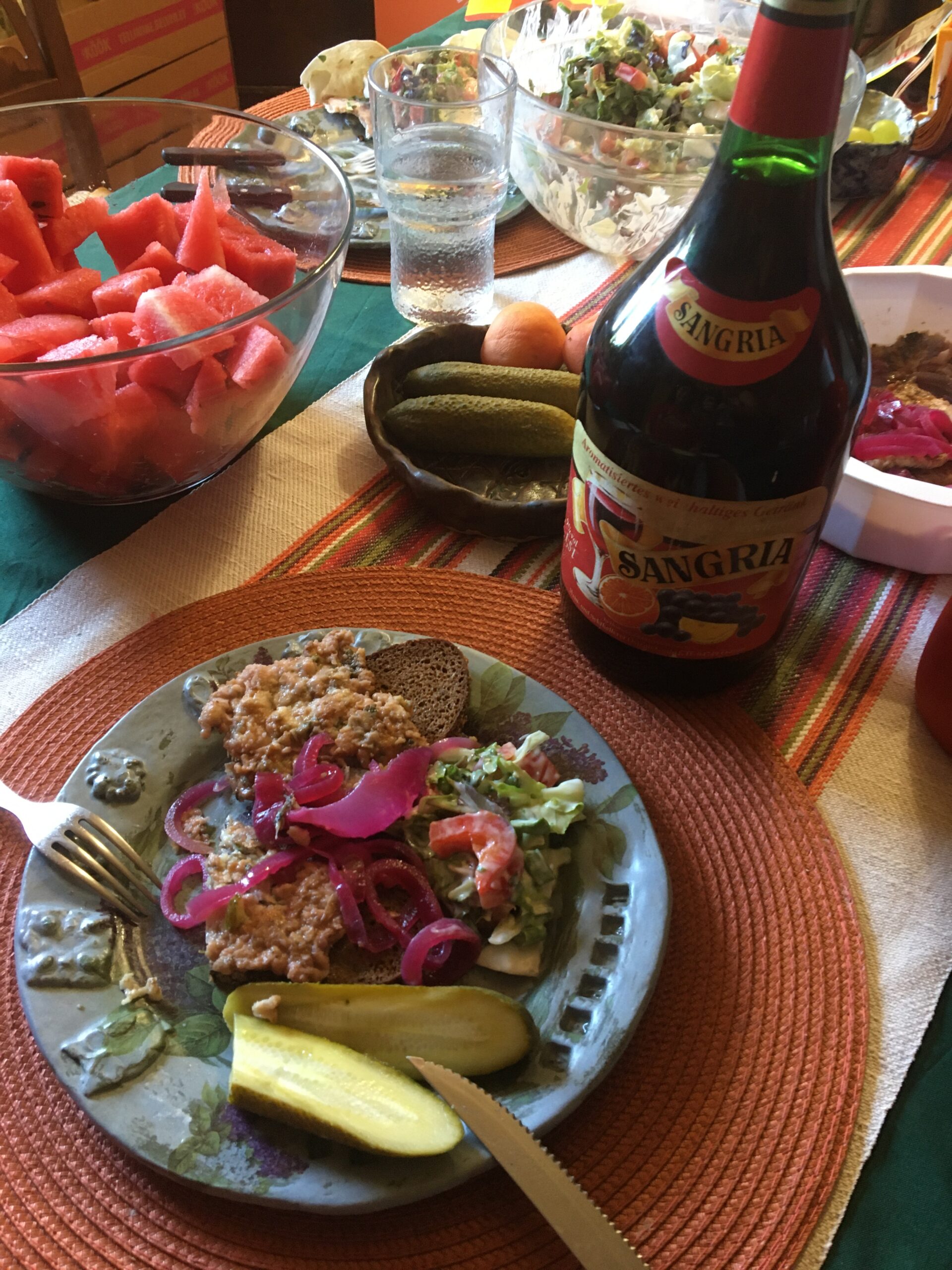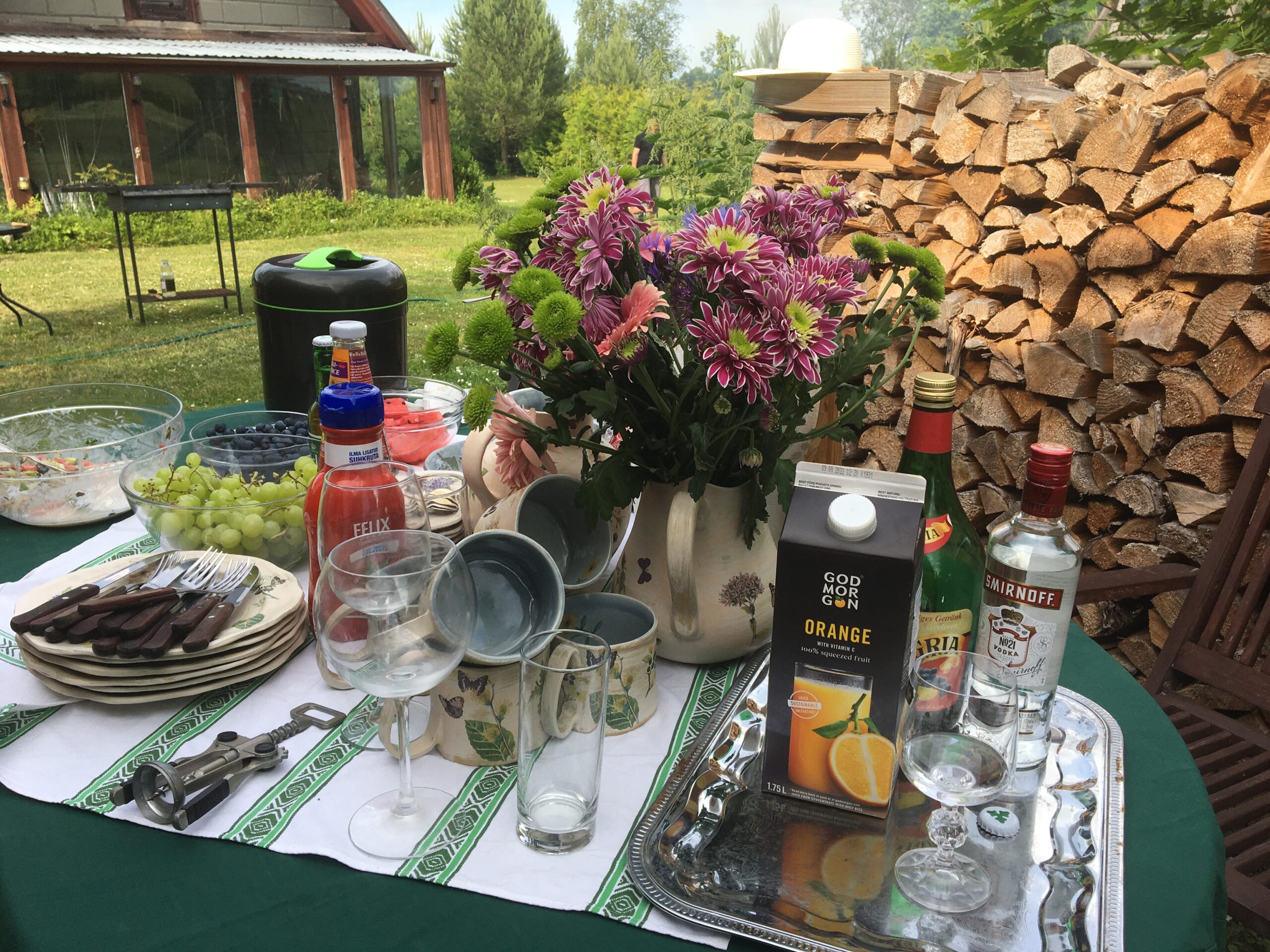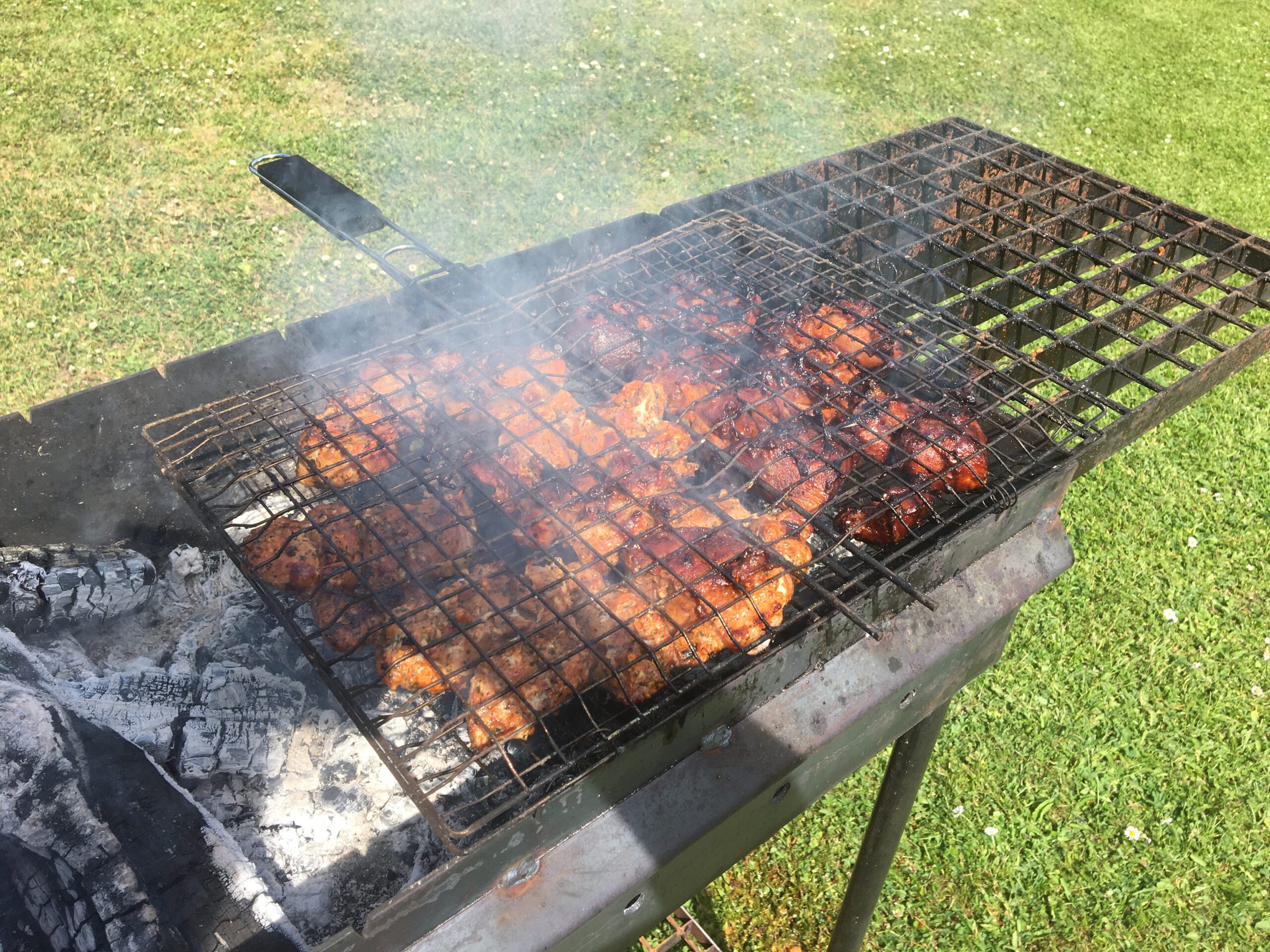 Menüü oli meil järgmine: Allan grillis liha – valikus oli Armeenia šašlõkk (Karni) ja Mustikašašlõkk (Rakvere). Kõrvale tegin värsket salatit maitsestamata jogurtiga. Lisaks mustikad, viinamarjad, arbuus ning minu valmistatud tort.