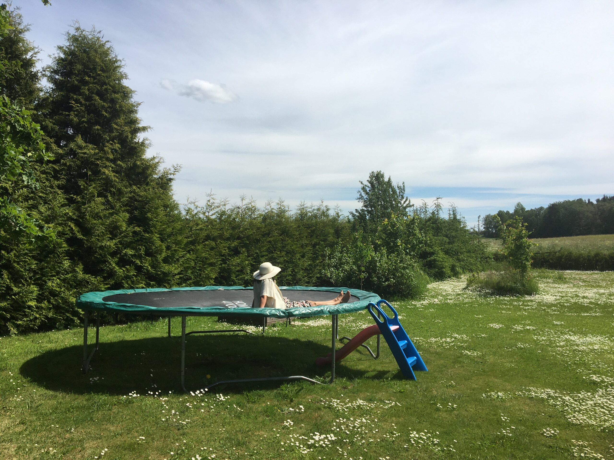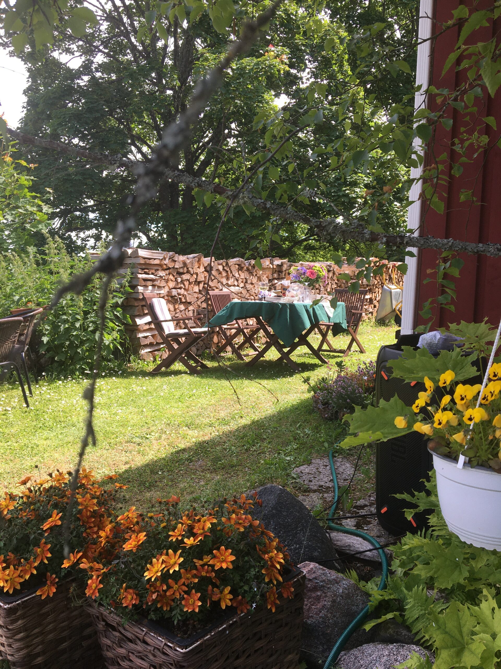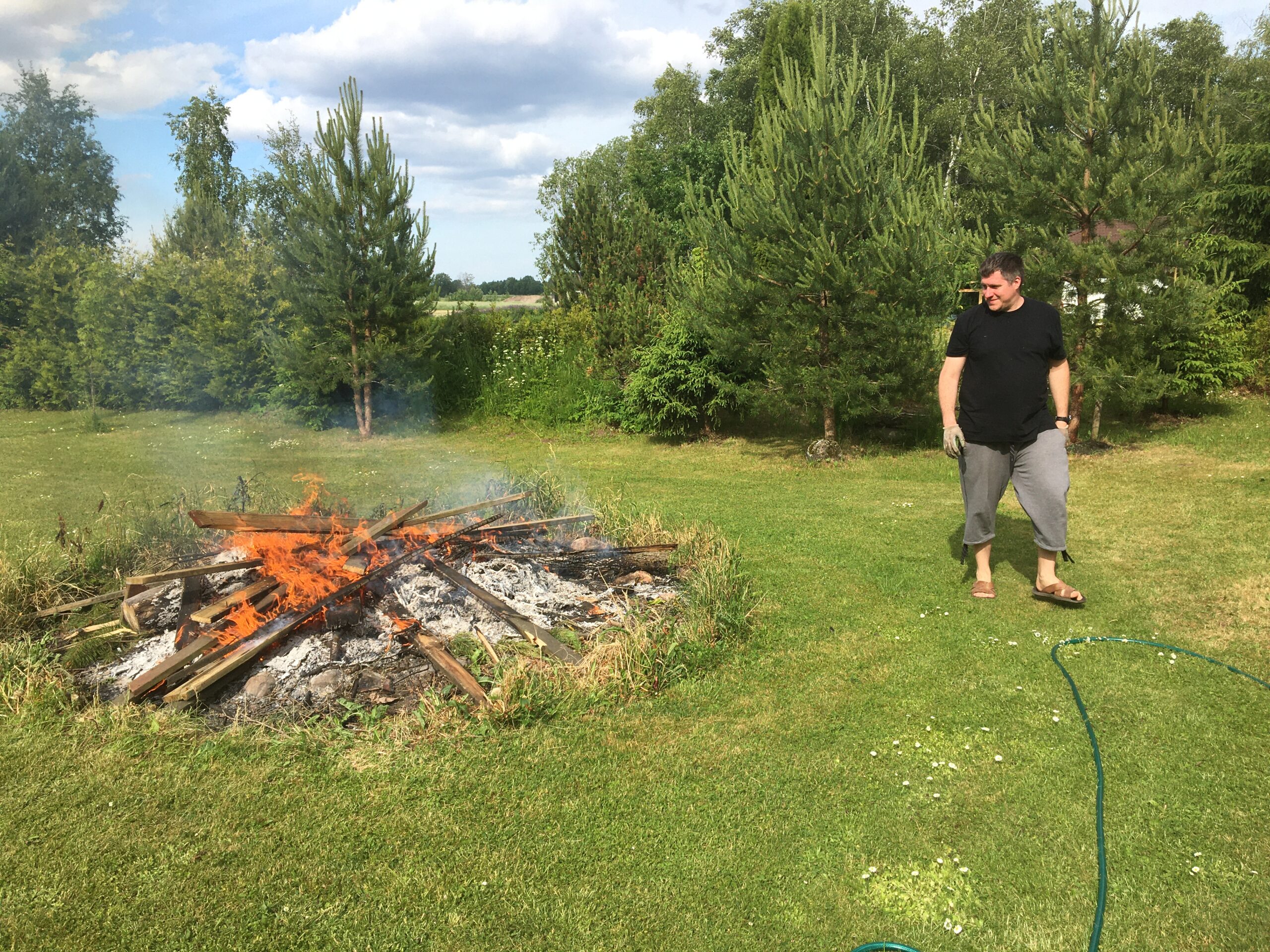 Hommikul läksid lapsed Margusega kolmeks ööks (pühapäevani) Saaremaale. Peale seda hakkasime aias toimetama. Mina rohisin ja niitsin ning Allan lammutas majaesist terrassi. Maja vajab vundamendi soojustamist ning ühtlasi saab siis teha millalgi ka uue terrassi. Rügasime mõned tunnikesed aias päikese käes (ilm on mega – mingi 30 kraadi sooja!) ja siis hakkasin Jaanipäevaks salatit tegema ning õue lauda katma. Lõunast tulid meile ka minu vanemad ja noorem õde Hanna-Liisa.