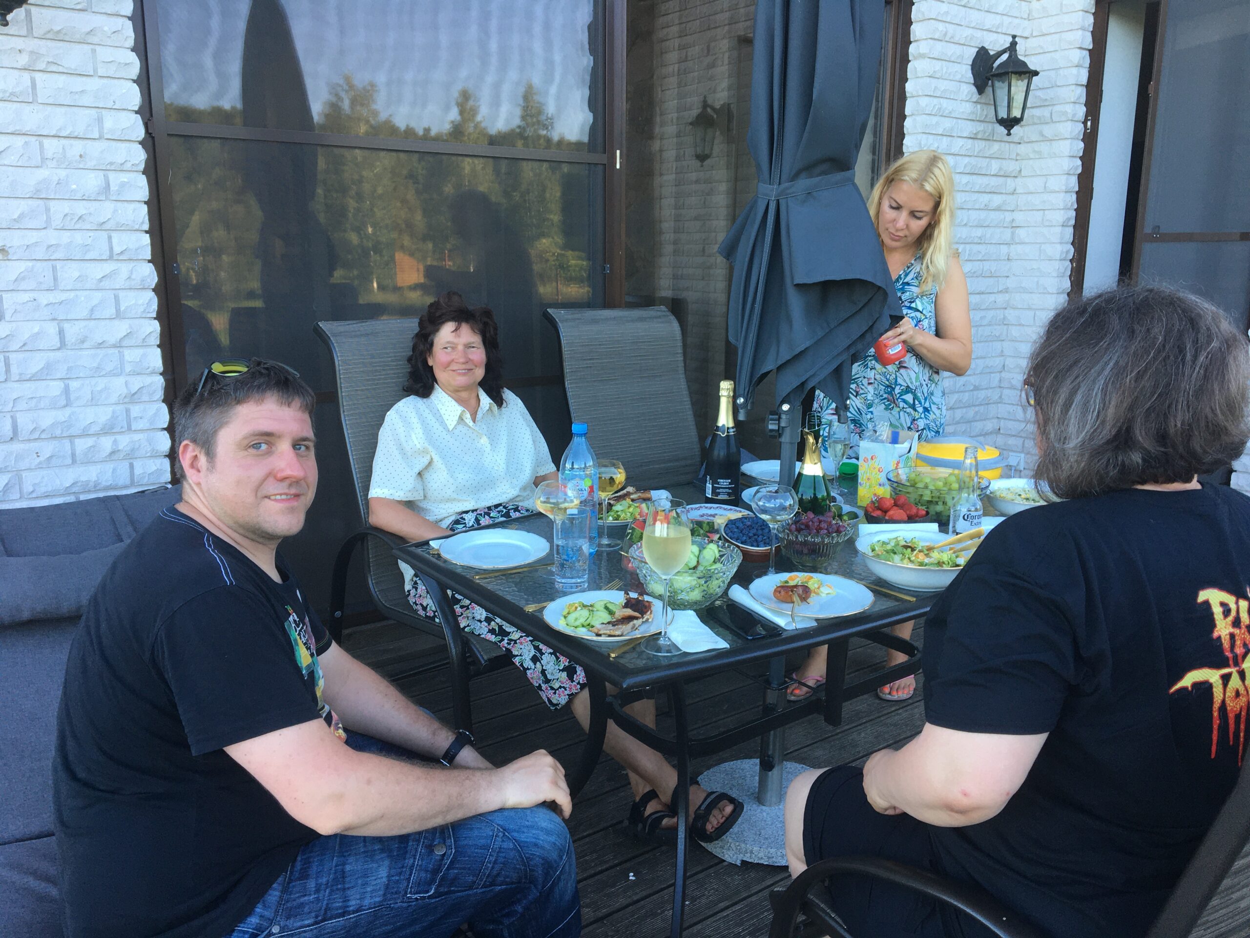 Tegime Imaveres Tikupoisis peatuse, sõime kõhud täis (appi kui hea BBQ praad ja moonisaiad neil on!) ning siis otsustasime, et lähme hoopis kõik koos vanema õe Marie ja ta mehe Raido juurde Vorbusele. Mõeldud-tehtud. Viisime asjad Hanna poole ära, hüppasime poest läbi ning sõitsime Emajõe äärde, kus pidasime siis veel ühe Jaanipäeva peo (eilsest Jaanipäeva üritusest loe SIIT) – taaskord grillisime, Raido laulis Karaoket ja mõnulesime tünnisaunas. Muusika oli õhtu läbi nii valju, et naabritest ja enda kõrvadest hakkas kahju.. hahaaa. Ma alati nii ootan vanema õe juurde minekut ja siis seal ootan vaikust ja ära minekut 😀 Nad lihtsalt on nii energiast pakatavad ja väsitavad ning siis veel see vali muusika alati… Nende juurest tulles tunnen ennast nagu üksindust armastav vanainimene, kes tahaks vaikselt kuhugi omaette urgu pugeda. Teistpidi jällegi, mitte kellegagi pole niiii lõbus kui nendega! Kõige lõbujanulisemad, temperamentsemad ning külalislahkemad inimesed keda tean!