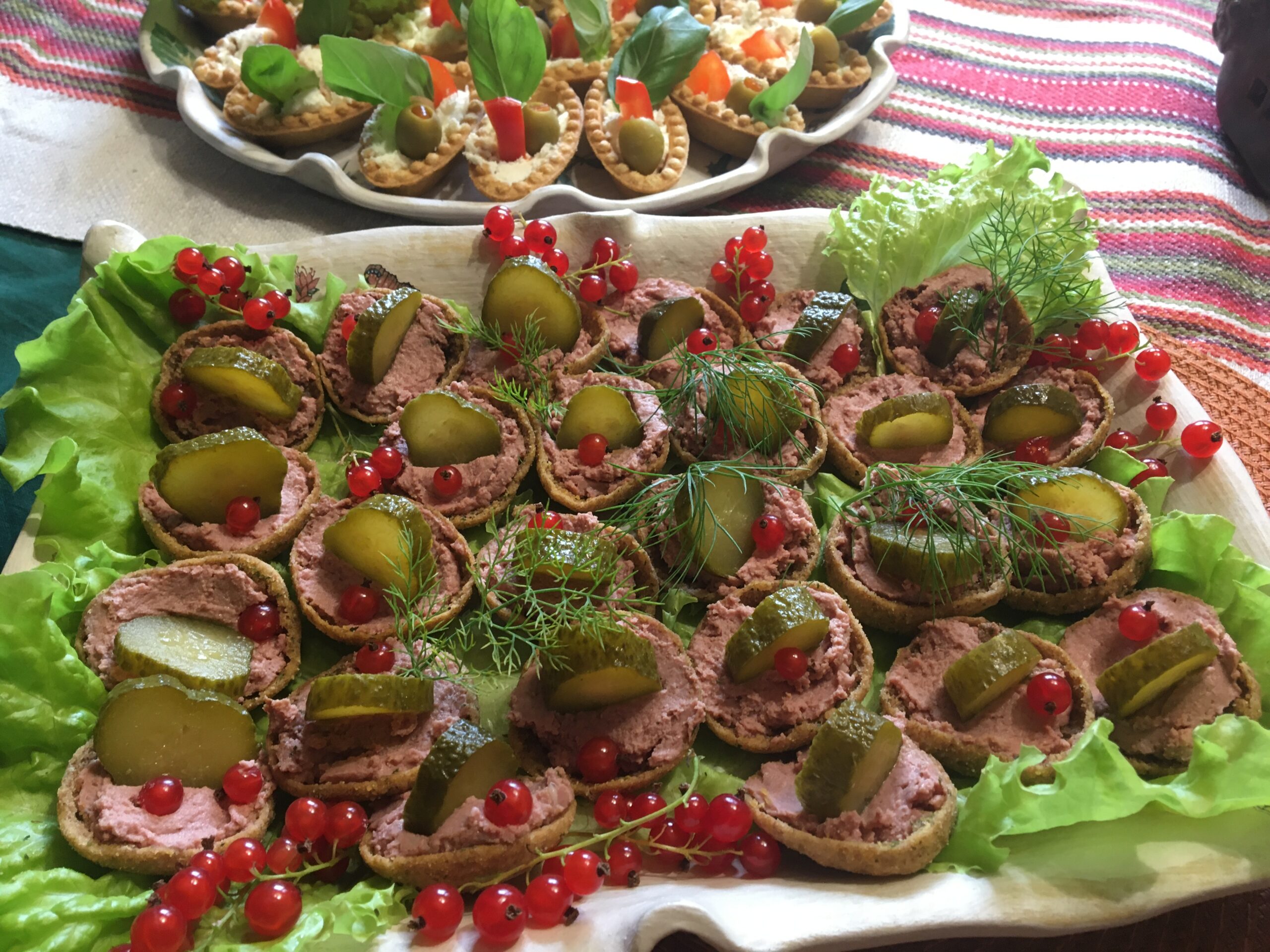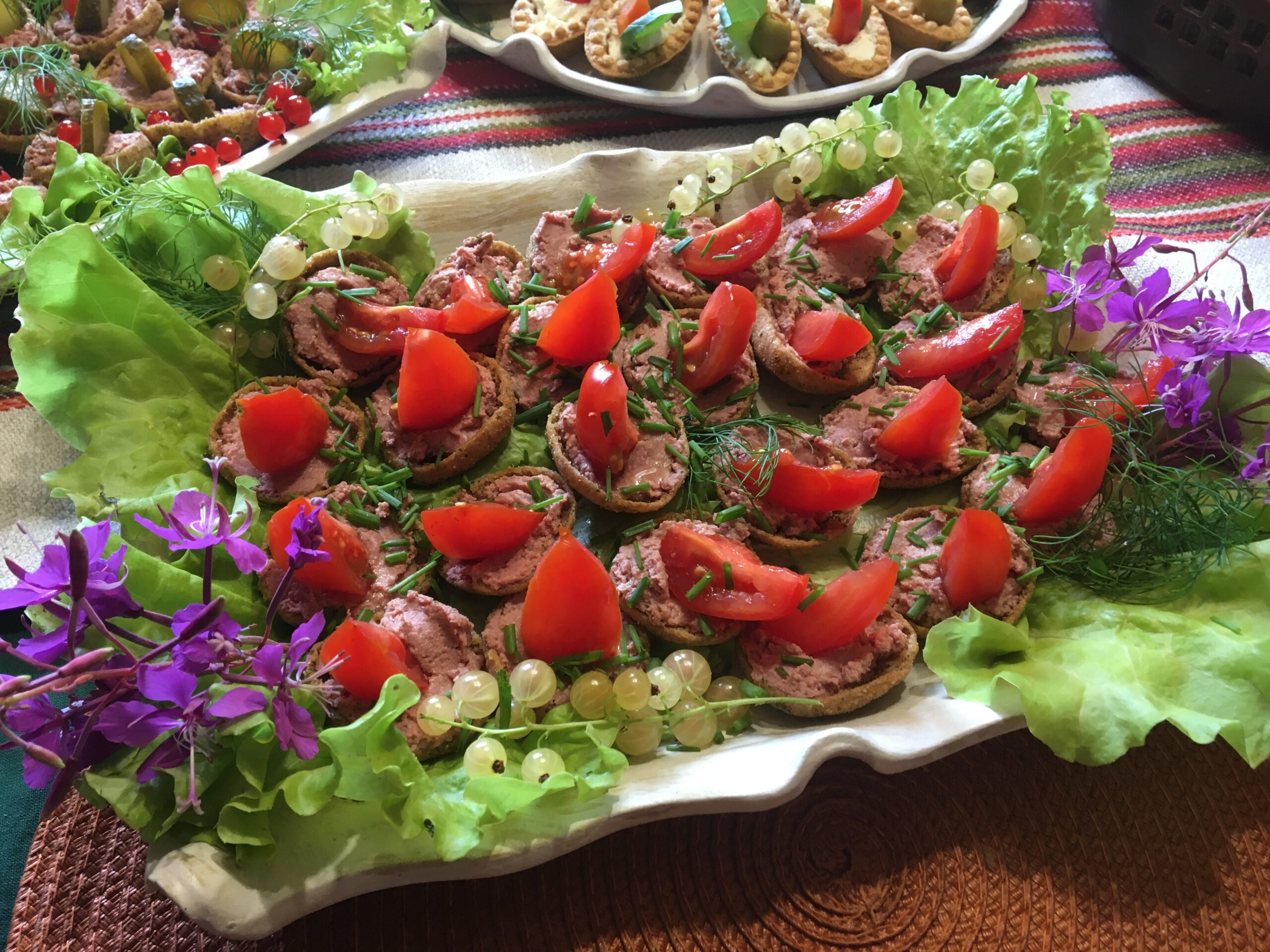 Seekord mõtlesin uusi suupistete retsepte välja. Näiteks täitsin “Flora” soolaseid salatikorvikesi feta juustu, paprika, oliivi ja basiilikuga ning väga maitsvad tulid ka “Linkosuo” väikesed krõbedad näkileiva snäkid pasteediga. Neid kaunistasin kirsstomati, murulaugu ja tilliga ning marineeritud kurgi, tilli ning punase sõstraga. Njammmm.. Muuseas, sellised imetillukesed näkkileiva korvikesed maksavad tellides ca 1.20-1.50 eur tükk… Johhaidii, olen kas vaene või liiga ihne, et sellist raha ühe ampsu eest välja käia.. hahaaa. (Mitte et ise valmistamine väga odavam tuleks… aga siis on ikkagi ise tehtud ja puha) 😀