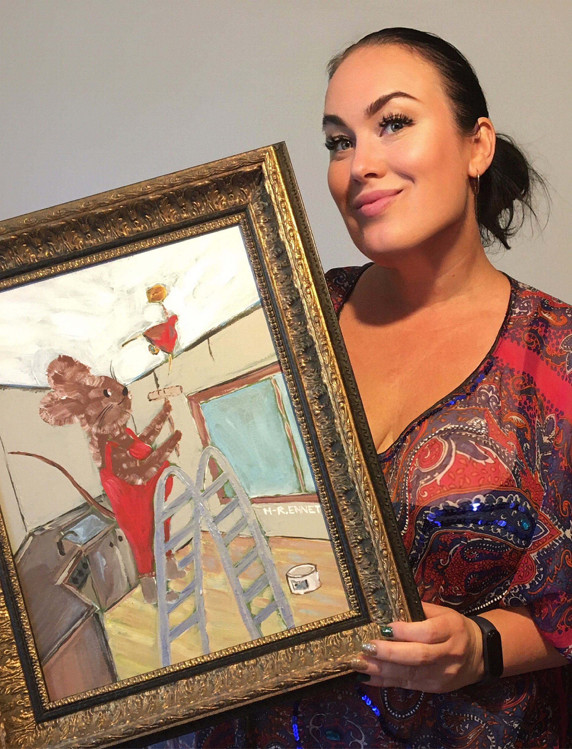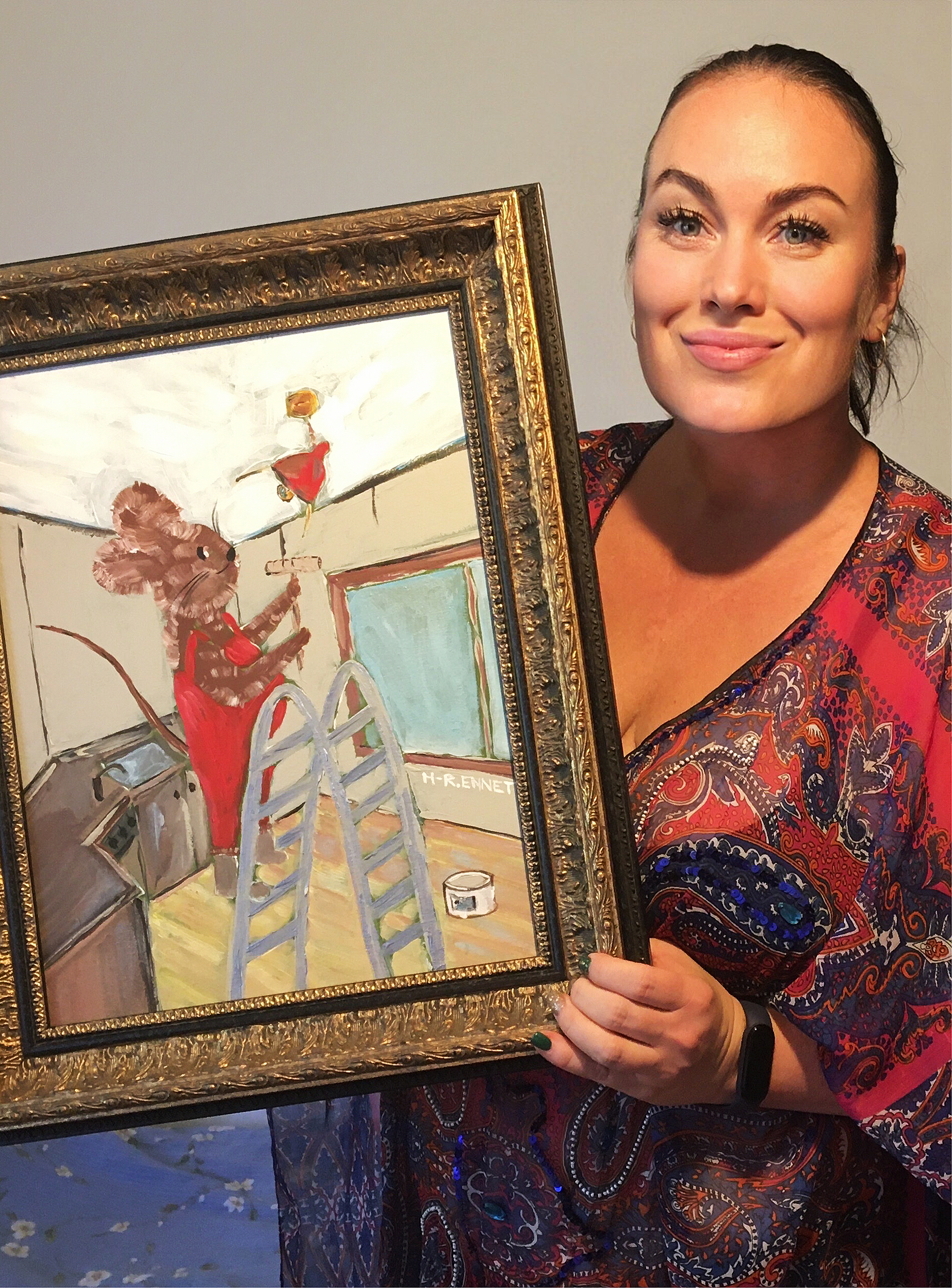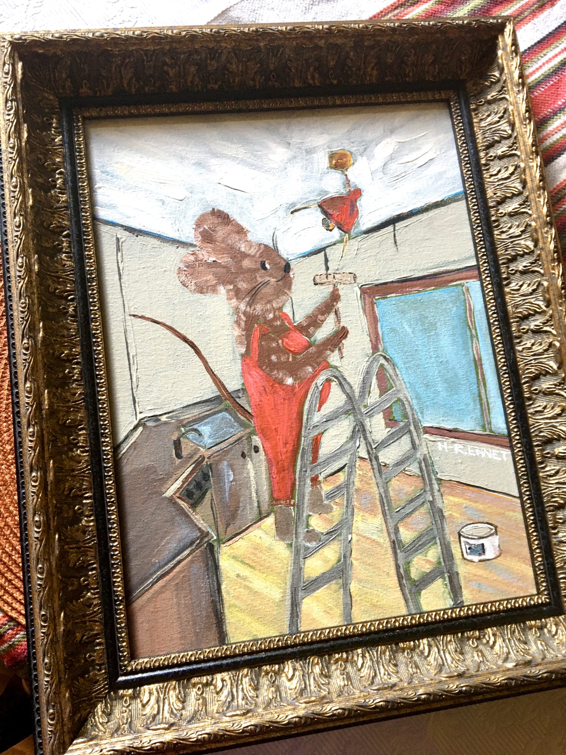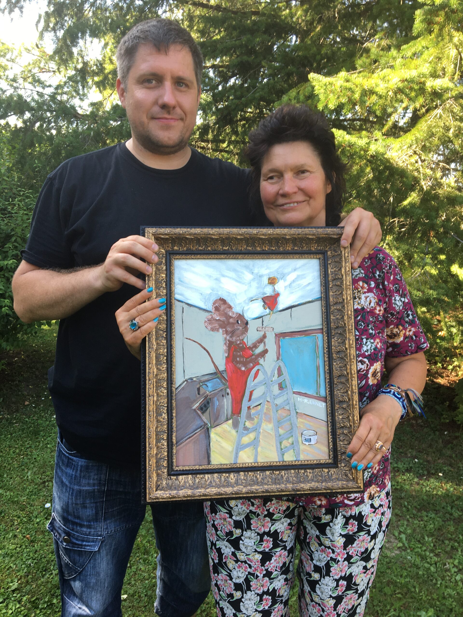 Täna (04. august) on Allani ema Sirli sünnipäev. Tegime talle üllatuskingituse ning kutsusime ta mitmeks päevaks meie poole maale külla. Valmistasin kartulisalatit ning tegin traditsioonilise küpsise-vahukoore tordi. Kingituseks tegin aga oma 30×40 cm akrüülmaali Tema Kõrgeausus Hiir Esimene ( His Highness Mouse the First ) , mis oli pool aastat ka Eesti Rahva Muuseumis (ERM) näitusel.