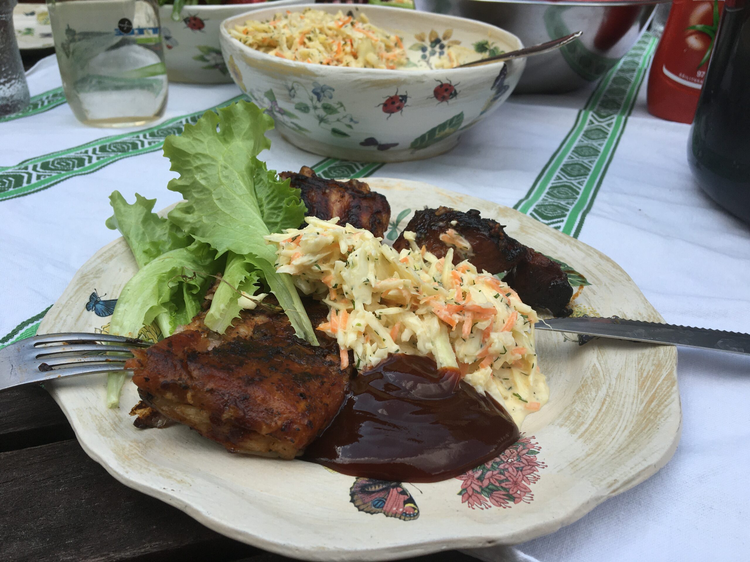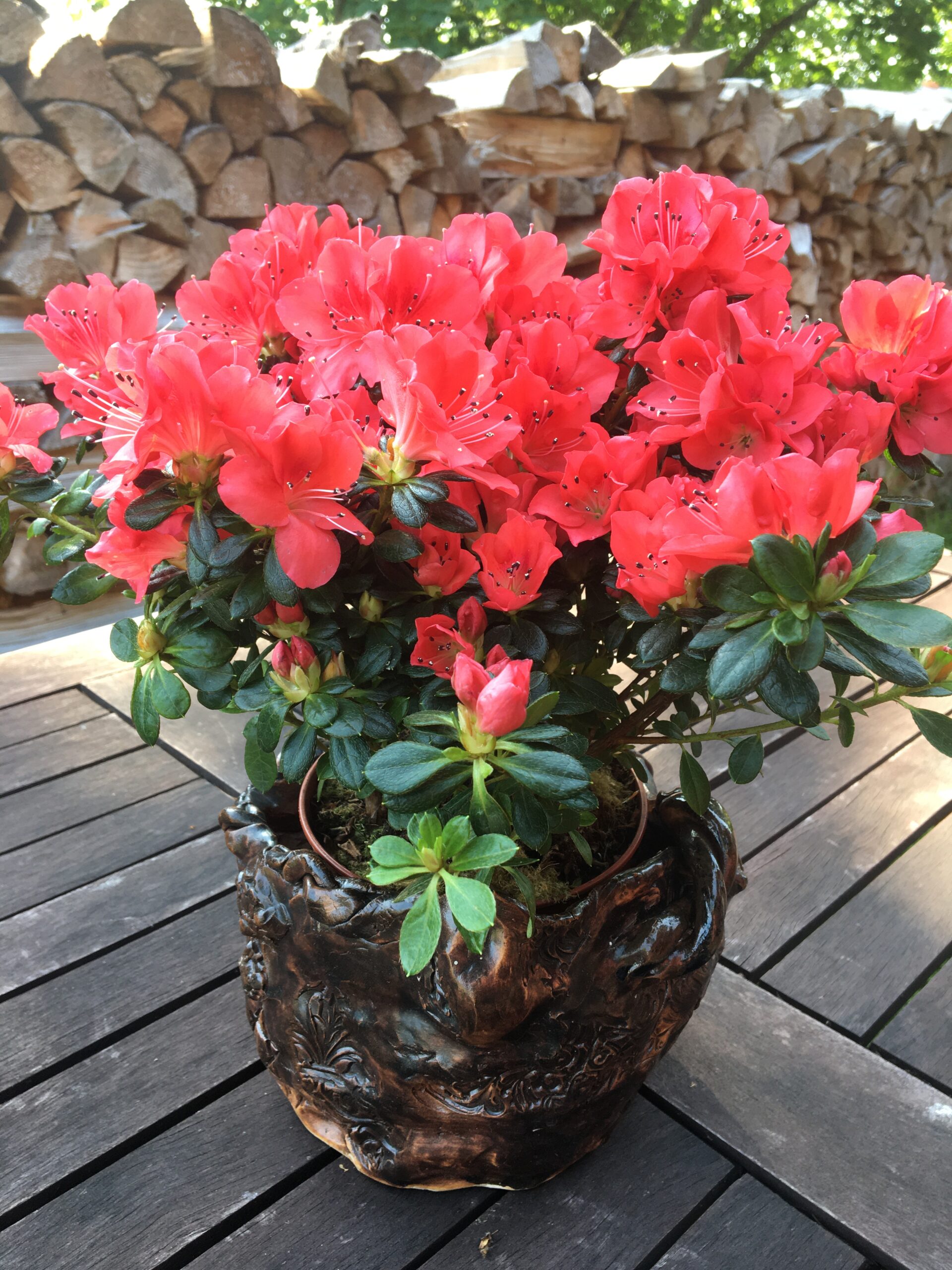 Seekord pole meil “Rahvusvahelisel armastuse päeval” esimest korda lasanjet ja vahukooretorti. Täna on nii soe ja päikeseline ning otsustasime hoopis õues päikest võtta ja grillida – küpsetasime ribisid ja kõrvale tegin värsket salatit. Allan viis mind kohe peale hommikusööki õue ja andis imeilusa potikese Rhododendroneid. Panin need hetkel enda valmistatud savipotti aga hiljem ilmselt istutan õue.