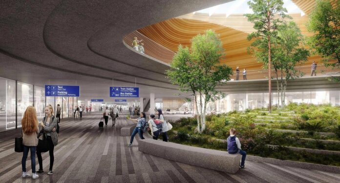 Arhitektuurikonkursi võitnud arhitektuuribüroo Ala välja pakutud terminali ilmestab Wirkkala lennukivineerist massiivne sein Ultima Thule. Kaarjas puitlagi meenutab Helsingi keskraamatukogu, mille on samuti projekteerinud büroo Ala, vahendab Helsingin Sanomat.